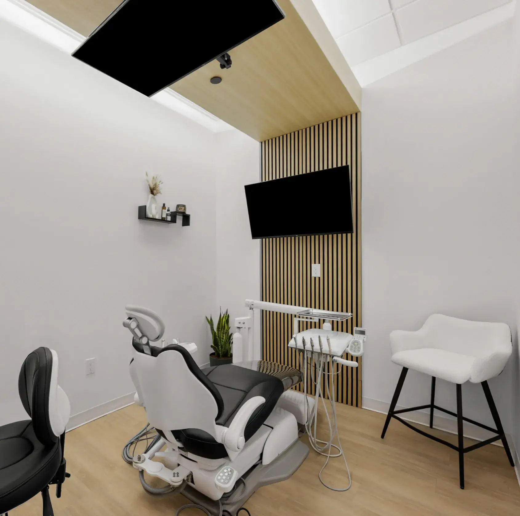 Enjoy your whitening session with Netflix, wireless headphones, and comfortable amenities that make the time pass quickly while your smile transforms.